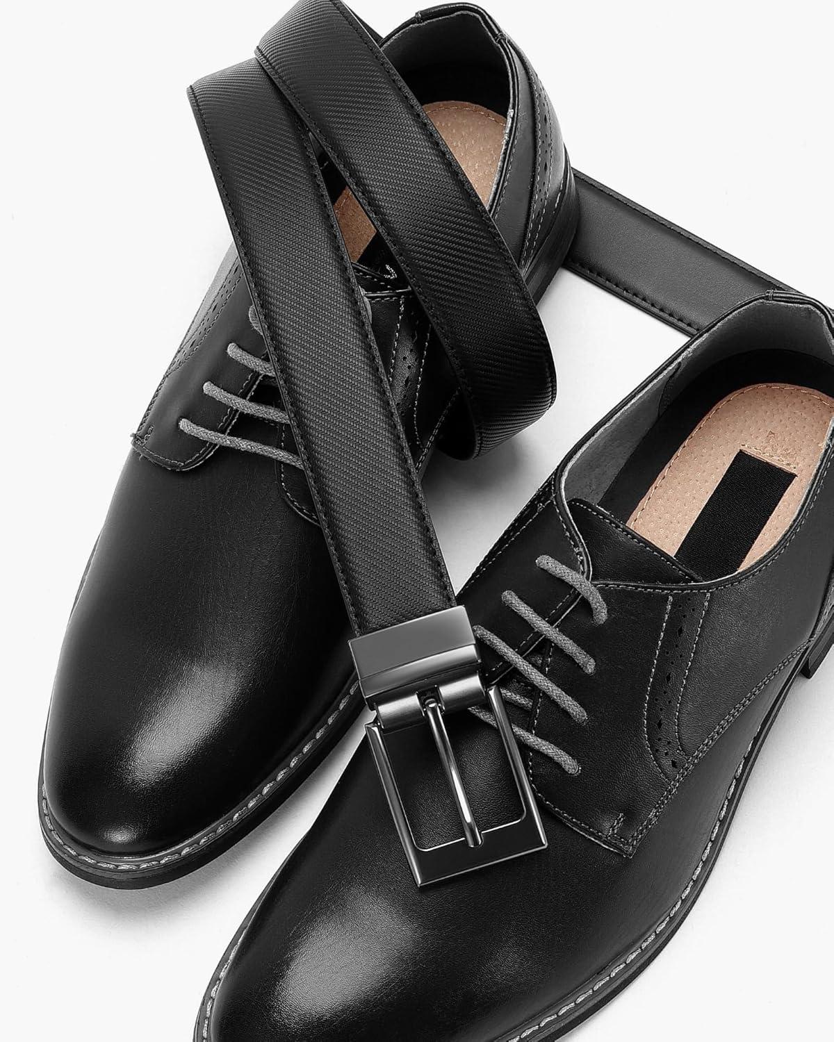 CHAOREN Reversible Belt Men 1 Piece - 1.25" Leather Dress Belt - Trim to Fit for Elegant Style(Classic Black/Twill Black)