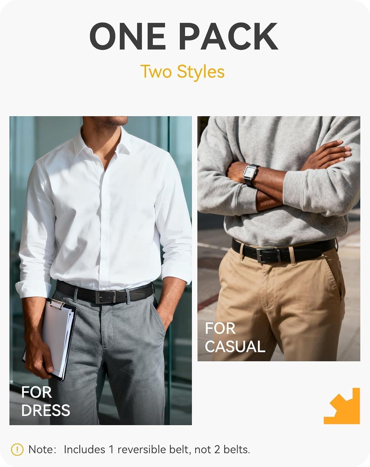 CHAOREN Reversible Belt Men 1 Piece – 1.25″ Leather Dress Belt – Trim to Fit for Elegant Style(Classic Black/Twill Black)