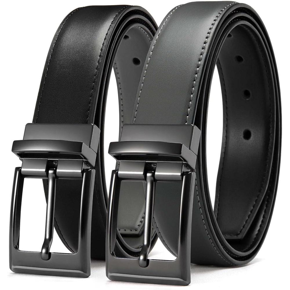 imageCHAOREN Reversible Belt Men 1 Piece  125quot Leather Dress Belt  Trim to Fit for Elegant StyleGreyBlack