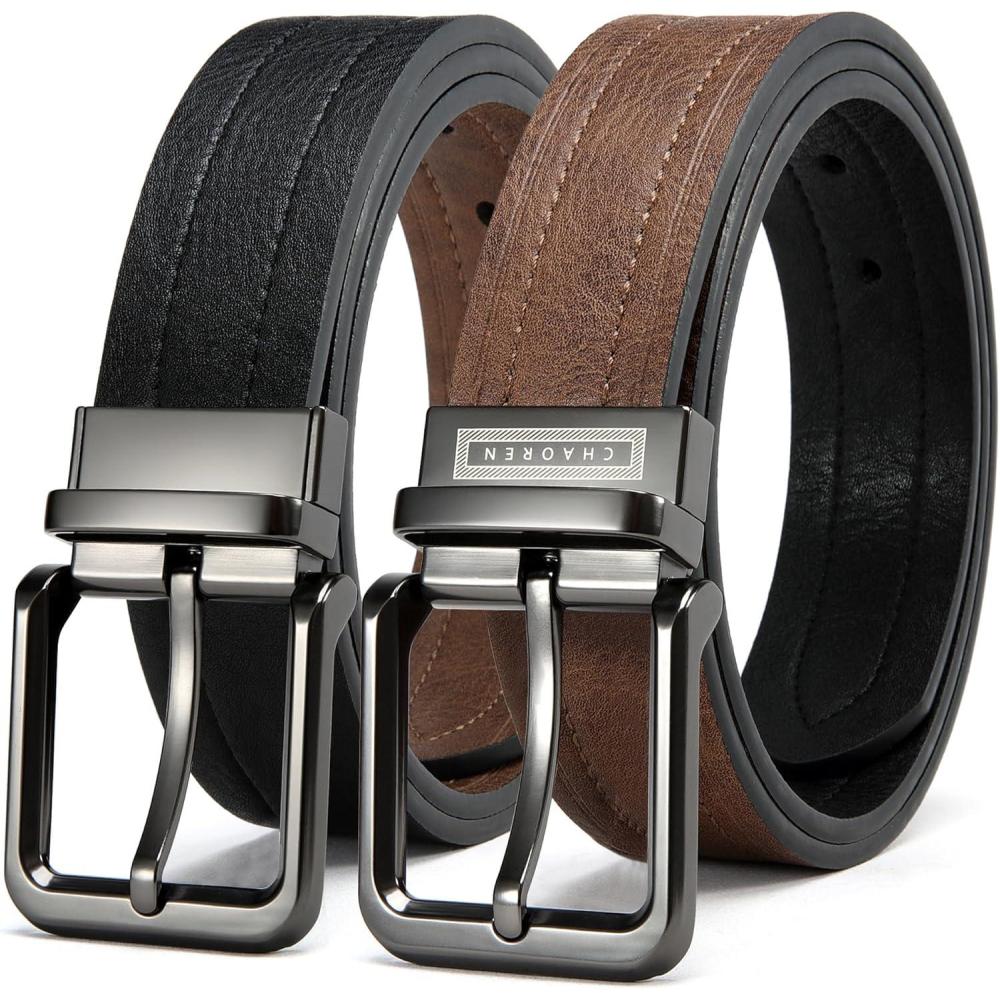 CHAOREN Mens Belts Leather 1 Pack – 1.25″ Reversible Belts for Men for Dress Pants – One Belt, Two Colors(Black/Orange Brown)