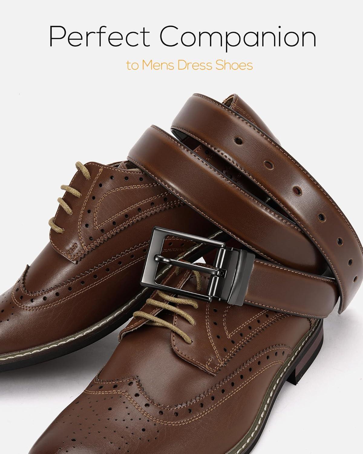CHAOREN Reversible Mens Belt 1 Piece – Leather Belt Men for Dress Pants - Single Belt, 2 Colors(Black/Dark Brown)