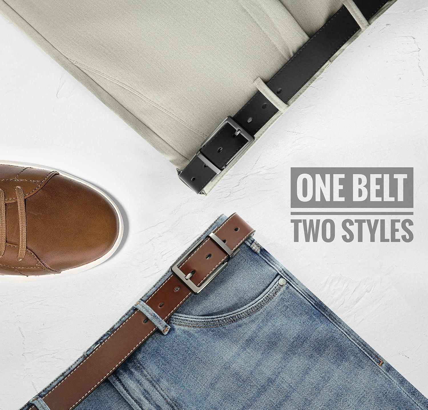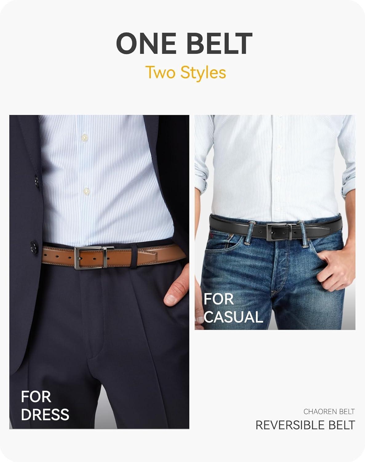 CHAOREN Reversible Mens Belt 1 Piece – Leather Belt Men for Dress Pants – Single Belt, 2 Colors(Black/Brown)