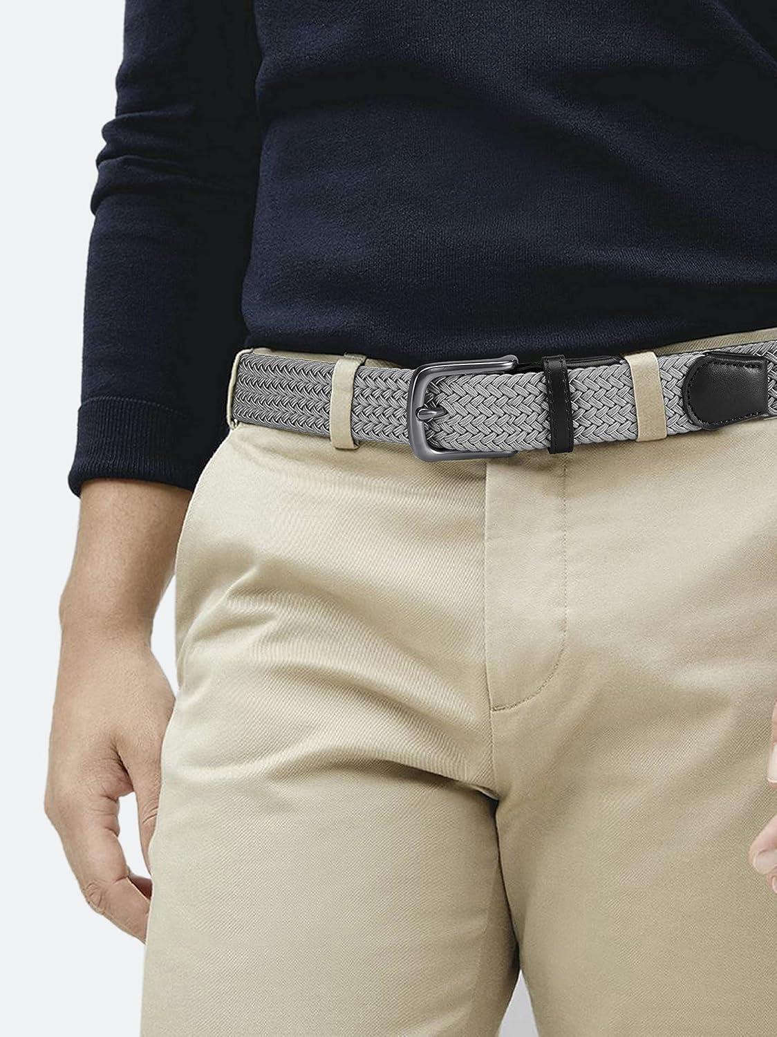 CHAOREN Stretch Belt Men 2 Pack – 1 3/8″ Braided Golf Belts For Men – Casual Elastic For Pants and Jeans(Grey & Khaki)