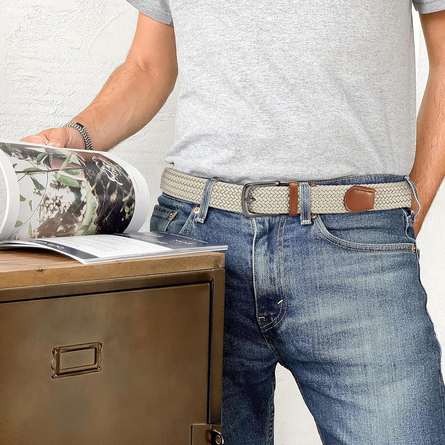 CHAOREN Stretch Belt Men 2 Pack - 1 3/8" Braided Golf Belts For Men - Casual Elastic For Pants and Jeans(Grey & Khaki)