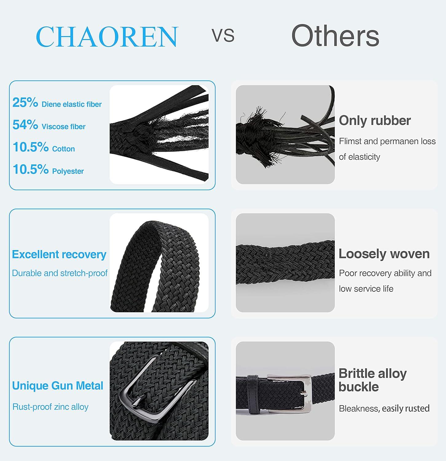CHAOREN Stretch Belt Men 2 Pack – 1 3/8″ Braided Golf Belts For Men – Casual Elastic For Pants and Jeans(Black & Brown)