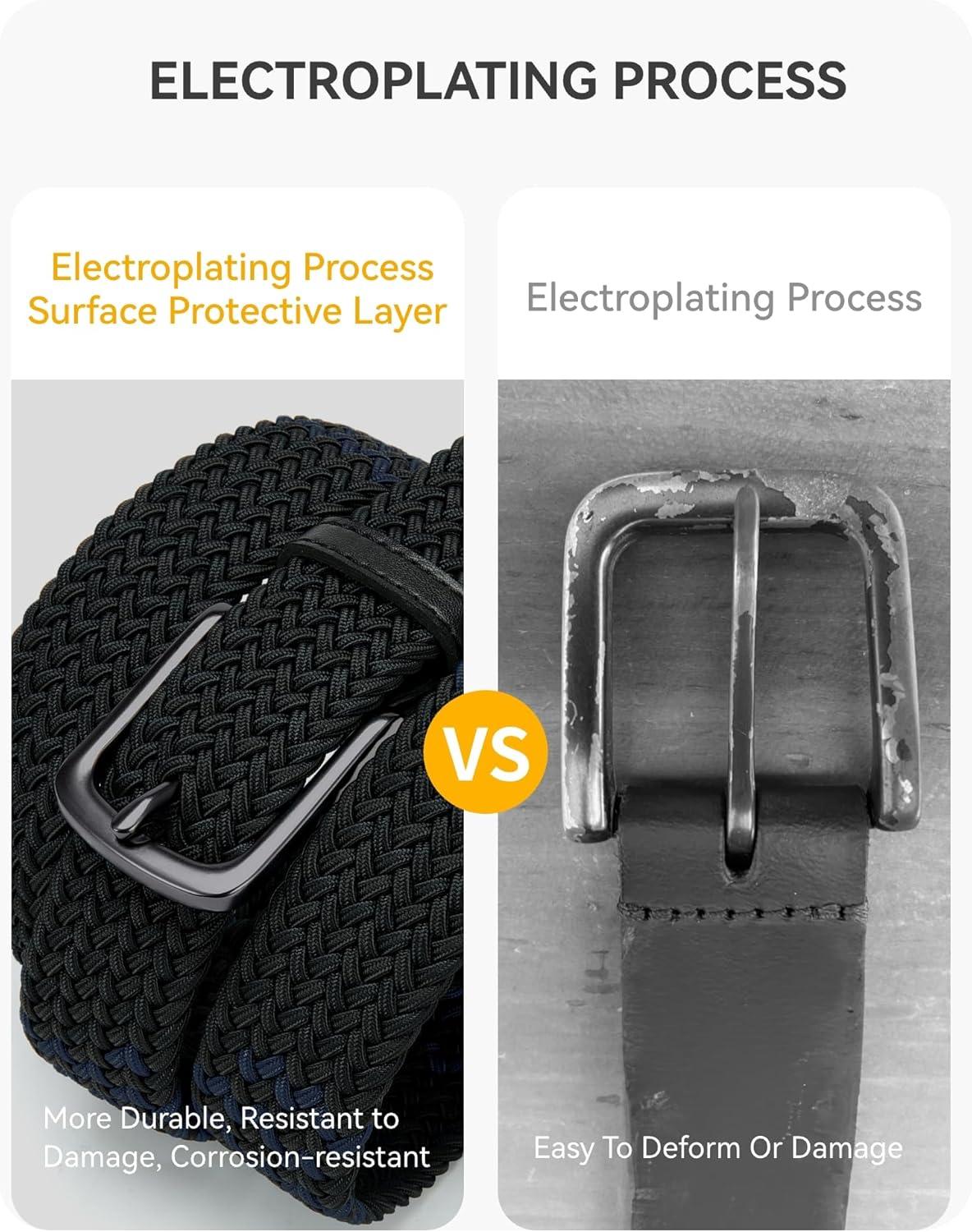 CHAOREN Stretch Belt Men 2 Pack – 1 3/8″ Braided Golf Belts For Men – Casual Elastic For Pants and Jeans(Navy Blue & Khaki)