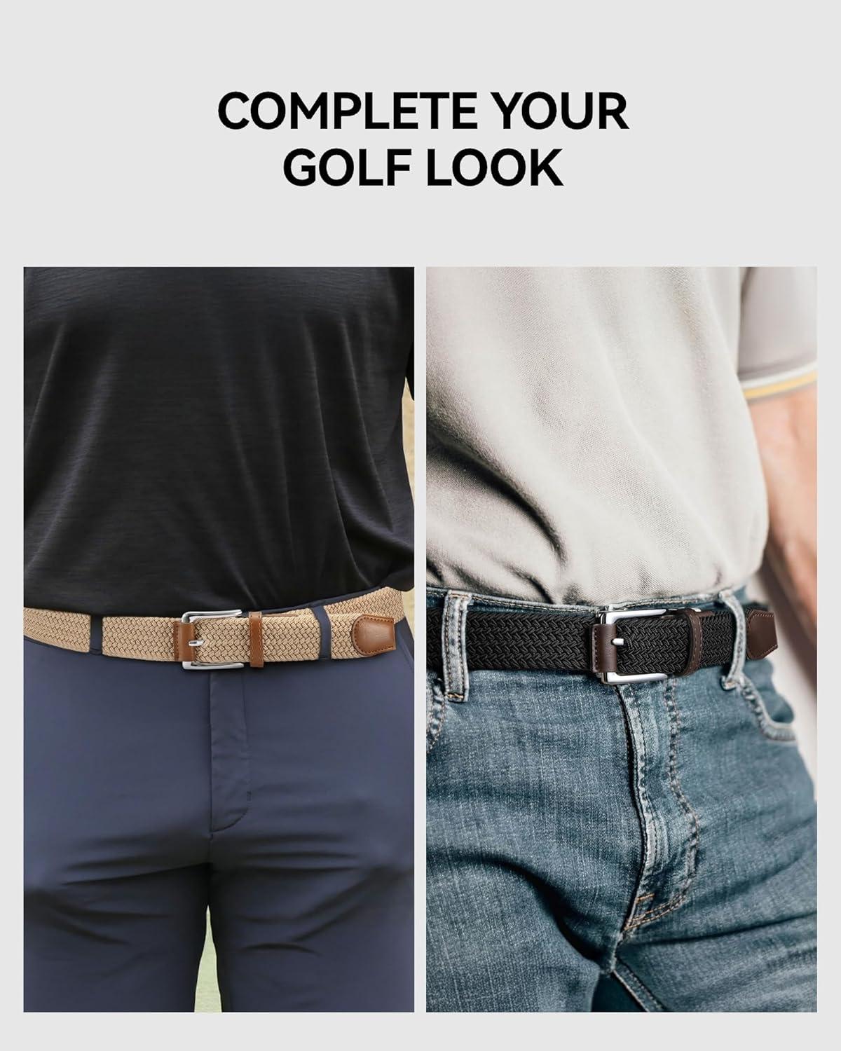 CHAOREN Stretch Belts for Men 2Pack – 1 3/8″ Men Elastic Braided Golf Belt – Woven Web Fit Summer Casual Jeans(2pack-black/Beige)