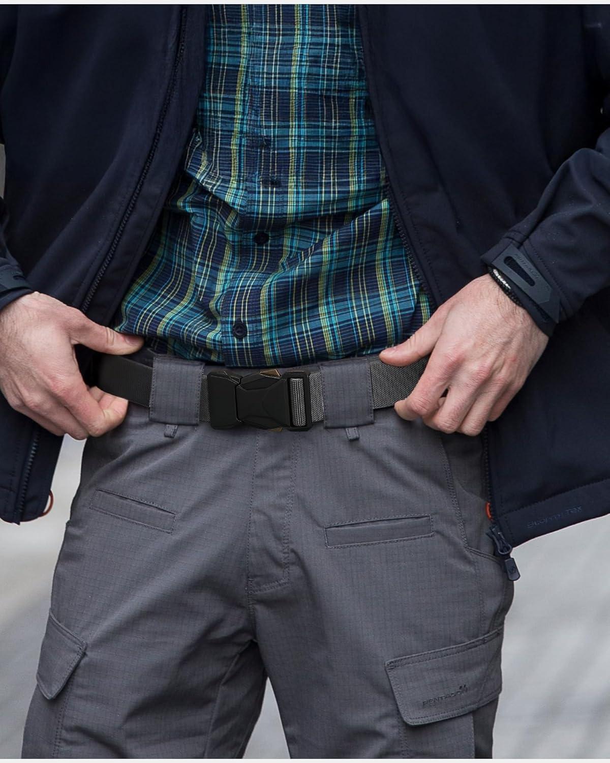 CHAOREN Tactical Belt Men – 1.5″ Stretch Belt for Work – Quick Release for Military Casual Jeans EDC Hiking(Grey)