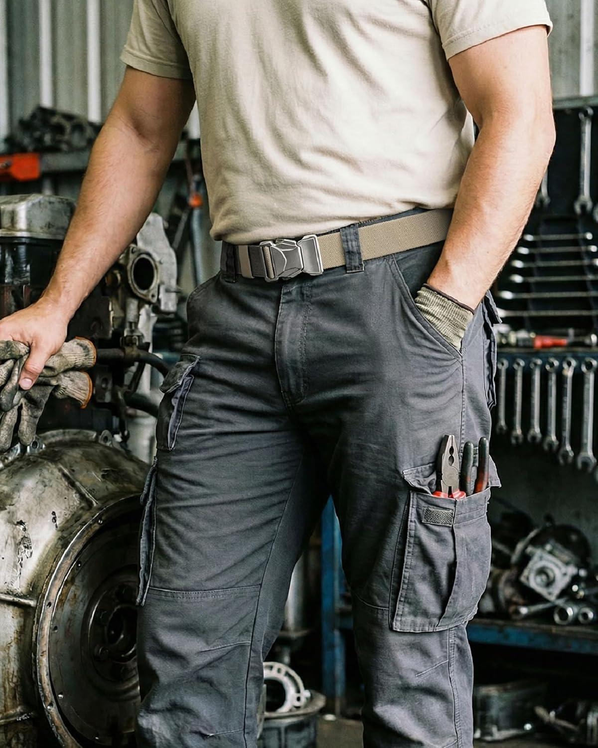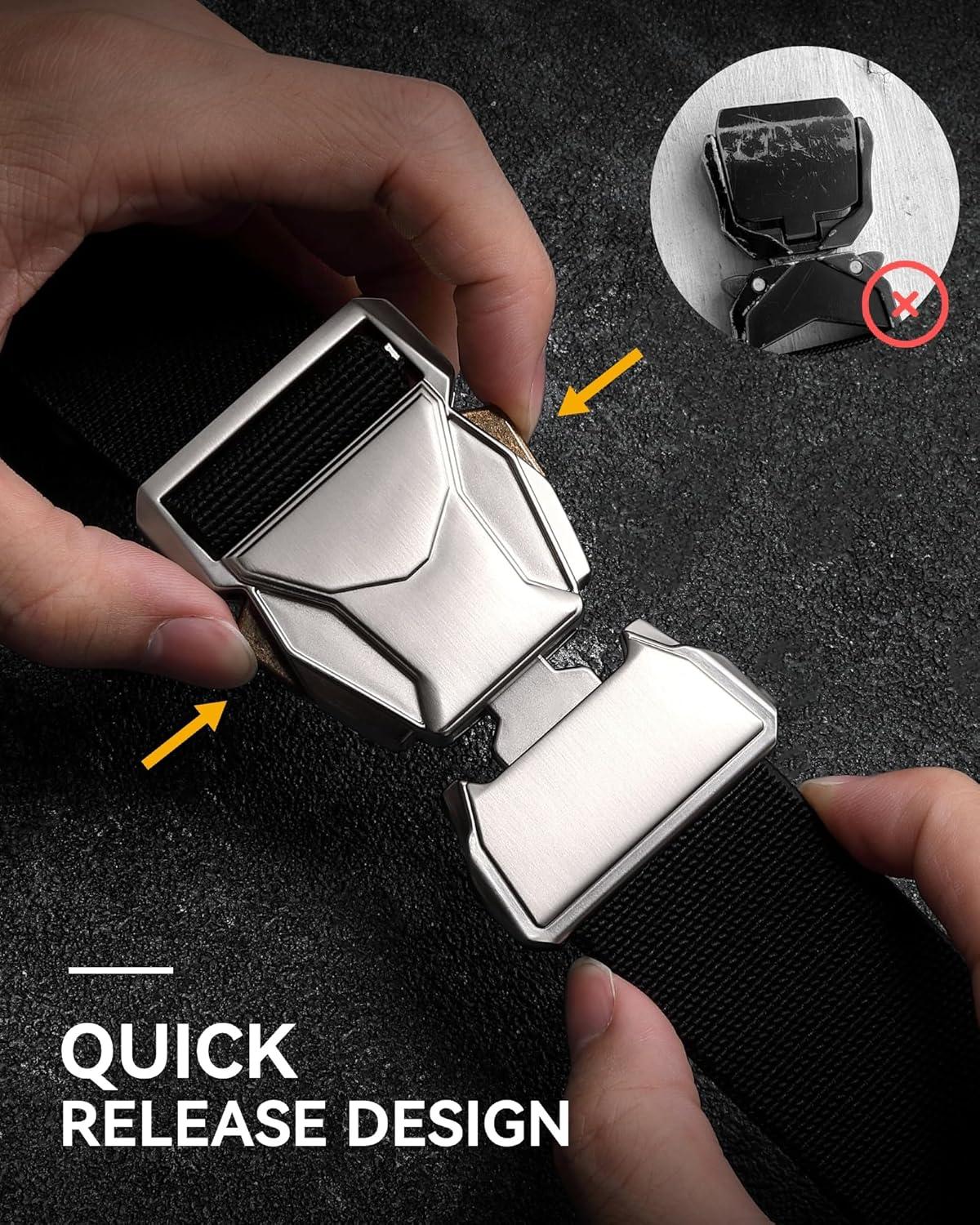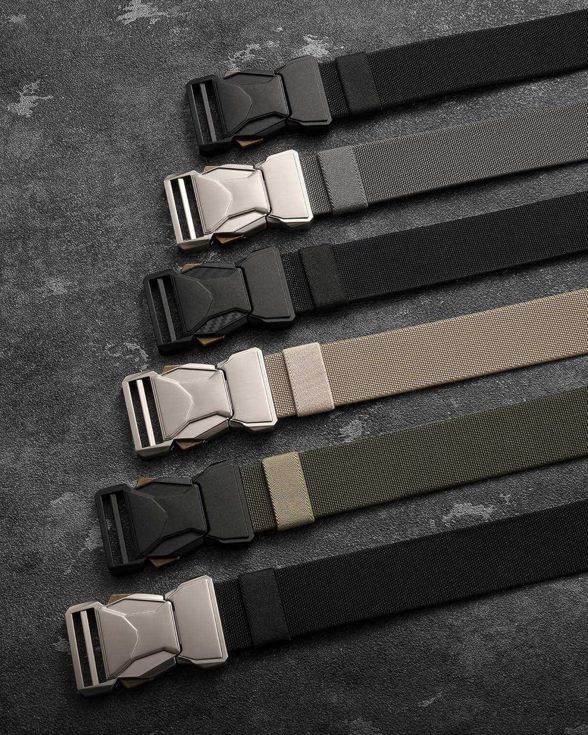 CHAOREN Tactical Belt Men – 1.5″ Stretch Belt for Work – Quick Release for Military Casual Jeans EDC Hiking(Silver/Khaki)