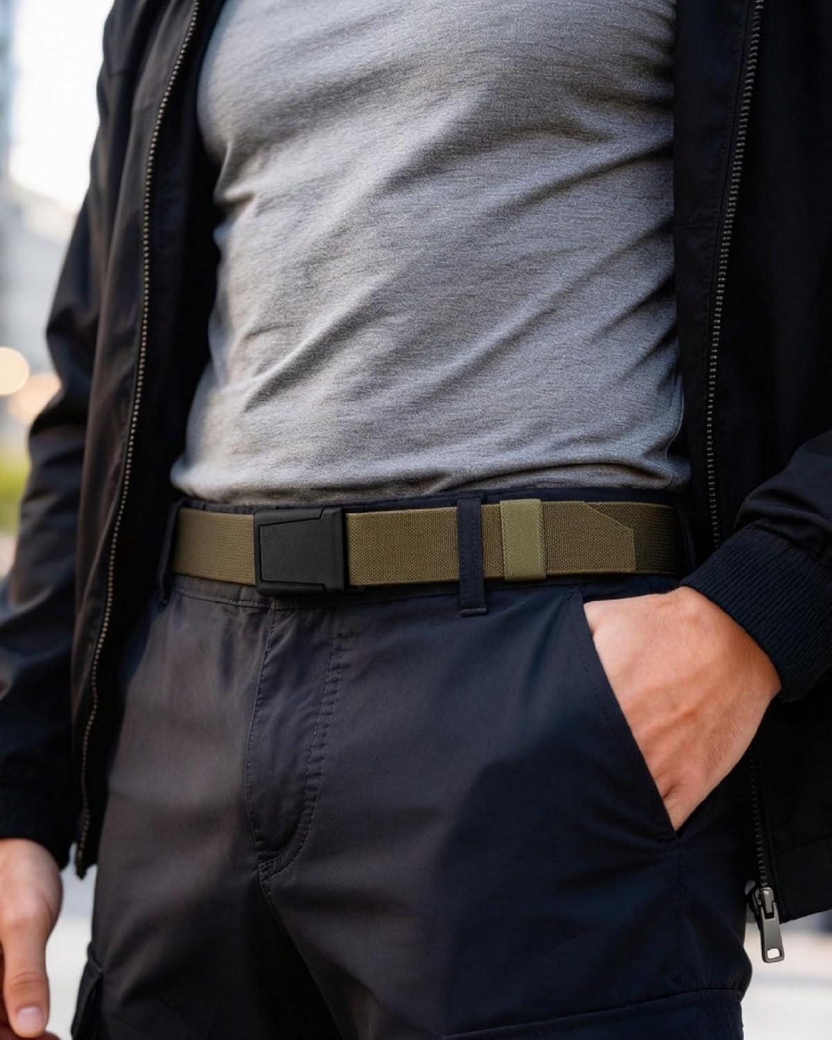 CHAOREN Tactical Belt Men – 1.5″ Stretch Work Belt with Quick Release Zinc Alloy Buckle for Military Casual Jeans Hiking(Frosted Matte / Ranger Green)