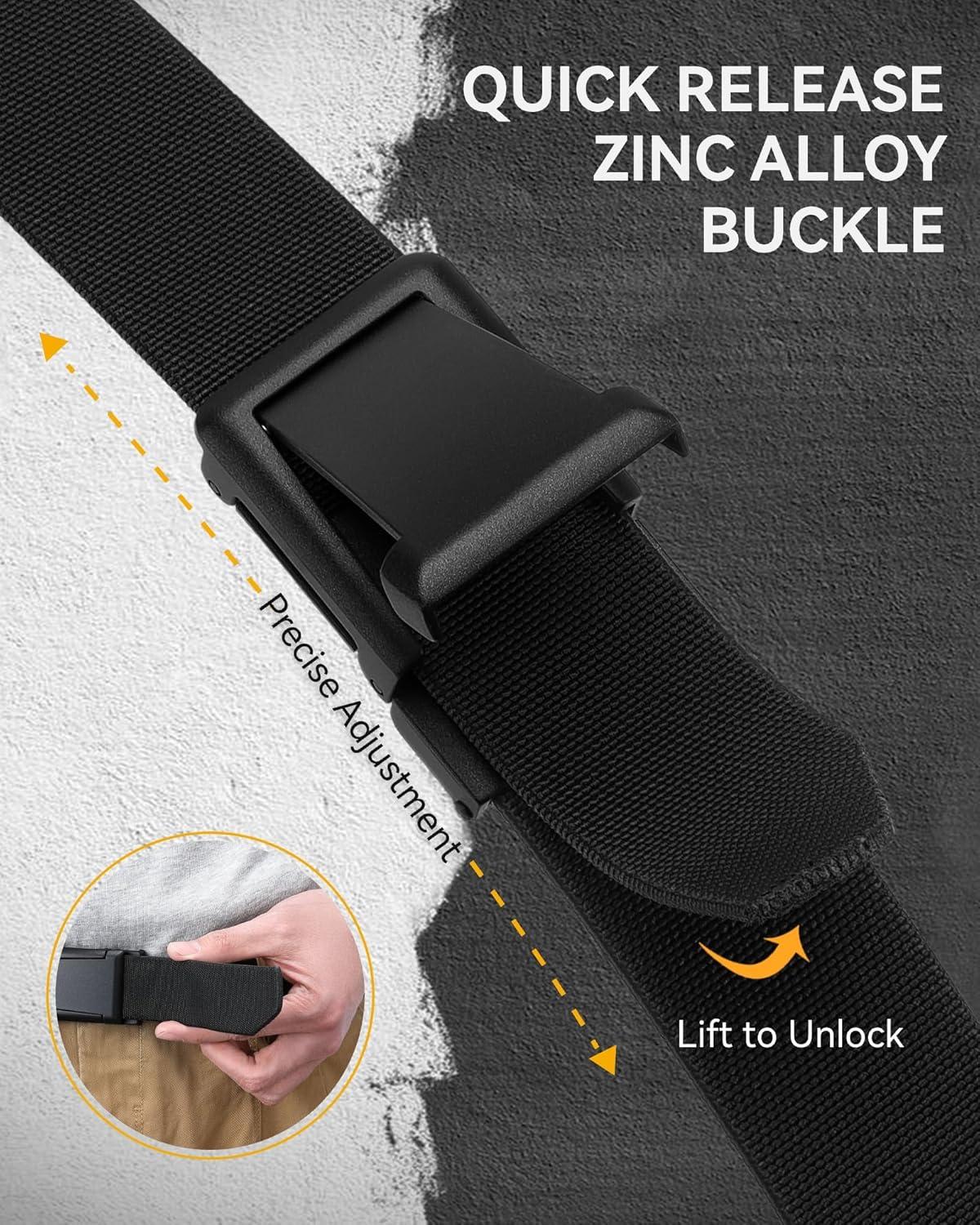 CHAOREN Tactical Belt Men – 1.5″ Stretch Work Belt with Quick Release Zinc Alloy Buckle for Military Casual Jeans Hiking(Gun Crosshatch / Black)
